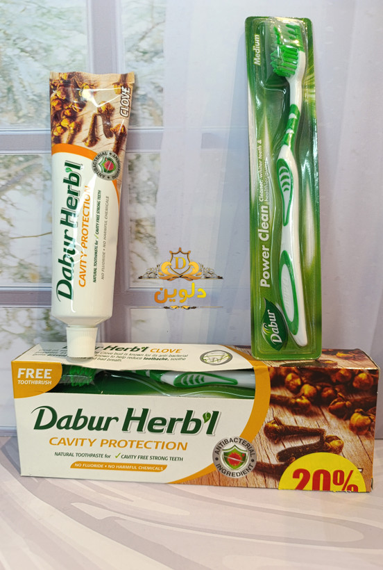 پک خمیر دندان گیاهی میخک ۱۵۰ گرم با مسواک دابور هربل – dabur herb’l: