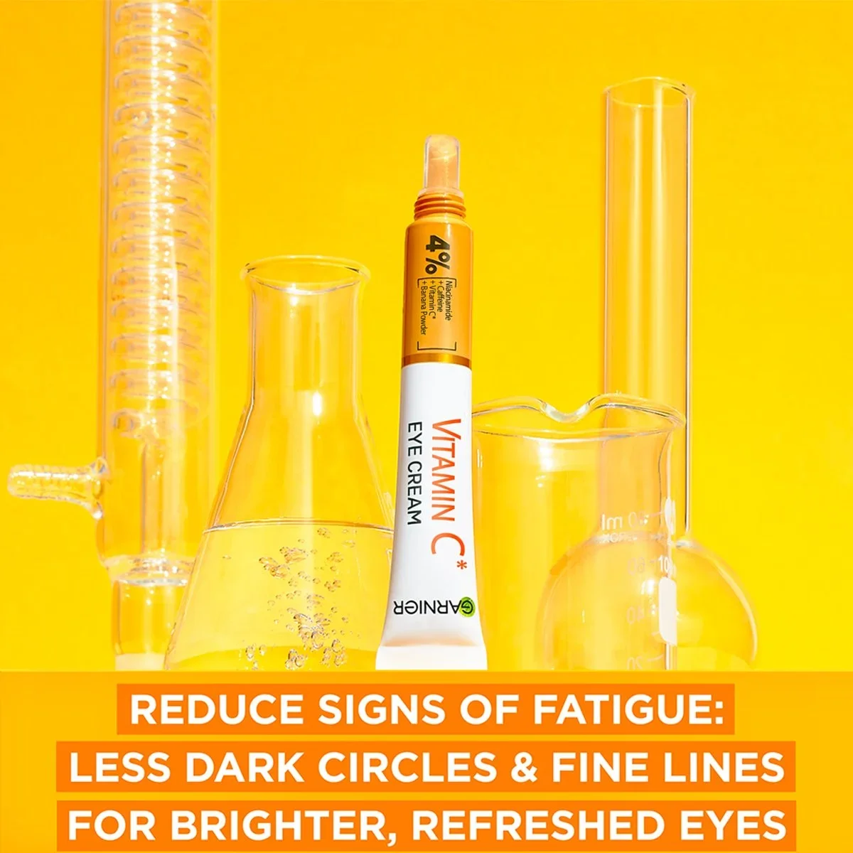 کرم دور چشم روشن کننده ویتامین C گارنیر با 4% ویتامین C، نیاسینامید، کافئین و پودر موز را معرفی می کنیم. کرم دور چشم گارنیر قابل استفاده در صبح و شب برای کاهش علائم خستگی از جمله ظاهر سیاهی و خطوط ریز است. برای اثرات خنک کنندگی بیشتر این کرم دور چشم خارجی را در یخچال نگهداری کنید.