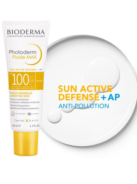 محصولی از برند فرانسوی Bioderma میباشد. بافت این ضد آفتاب به صورت فلوئید است و به دلیل بافت بسیار سبک سریع جذب پوست شده و احساس سنگینی و چربی ایجاد نمیکند. تکنولوژی Dry Touch به کار رفته در فلوئید ضد آفتاب SPF 100 بایودرما مدل Photoderm Max منجر به جلوگیری از چرب شدن و برق افتادن پوست میشود. ترکیب فوقالعاده سبک این محصول حسی بسیار نرم و لطیف به پوست میدهد. این محصول کاملا بی رنگ است و به راحتی روی پوست پخش شده و به هیچ وجه چربی روی پوست شما باقی نمیگذارد و پوست شما را سفید نمیکند. همچنین دارای حفاظت بیولوژیکی تقویت شده و محافظت آنتی اکسیدانی نیز می باشد و از علائم پیری ناشی از آلودگی عکس جلوگیری می کند. شایان ذکر است که مناسب برای پوست های حساس می باشد و غیر کومدوژن است و مقاوم در برابر تعریق و آب می باشد.