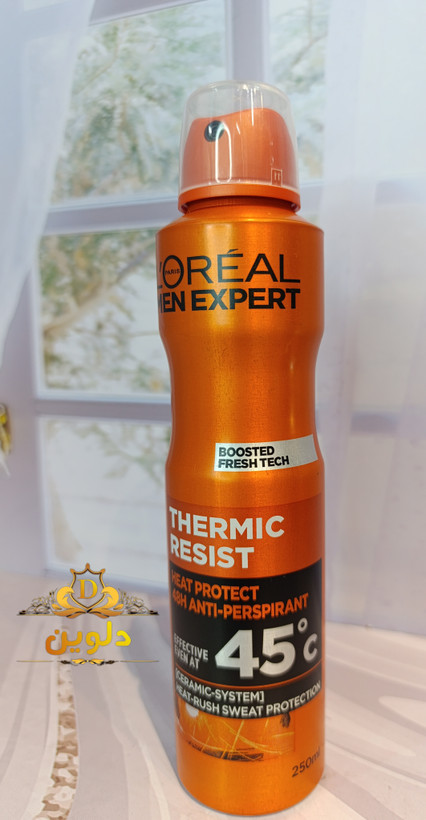 اسپری ضد تعریق لورآل ترمیک رسیست Thermic Resist حجم 250میل، یک اسپری ضد تعریق مردانه و فوق العاده عالی با اثر گذاری طولانی 48 ساعته از برند لورال است که جهت جلوگیری از ایجاد تعریق و از بین بردن بوی نامطبوع بدن تهیه شده است.